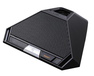The TS-821 is a Chairman unit of the Infrared Conference system. Since the system is cordless, it can be easily installed and removed. The Chairman unit features a priority speech key which allows it to take precedence over the TS-822 Delegate units when speaking. It can be operated on either the AD-0910 AC adapter or the BP-900A lithium-ion battery. It is equipped with a remaining battery indicator. Two types of dedicated microphones are made available for the TS-821 as optional products: the TS-923, TS-903 standard type and the TS-924, TS-904 long type.
